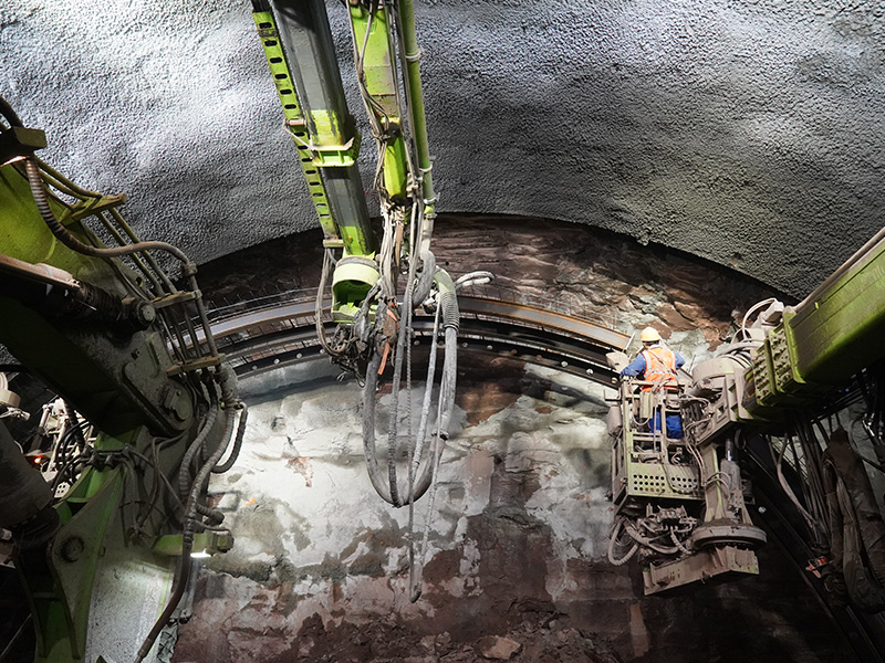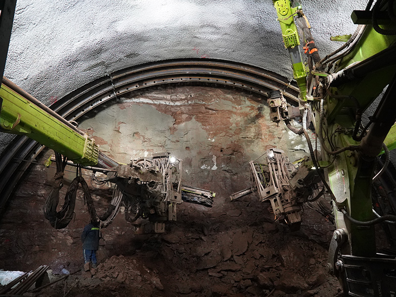 LH-150Y掘進(jìn)支護(hù)一體機(jī)組是藍(lán)海智能針對(duì)隧道掌子面施工開發(fā)集掘進(jìn)開挖、支護(hù)、噴漿、打錨桿作業(yè)等功能于一體的集成化施工,實(shí)現(xiàn)掌子面全工序作業(yè)設(shè)備。具備非爆掘進(jìn)、鉆爆掘進(jìn)、出渣、立架、打鎖腳和錨桿、注漿、噴漿等進(jìn)行平行作業(yè)能力,能滿足鐵路單洞雙線隧道、高速隧道、市政隧道、鐵路小斷面隧道施工作業(yè),一次掘進(jìn)隧道斷面尺寸寬度14-16米,掘進(jìn)高度7.8米以上,相比現(xiàn)在采用單工序循環(huán)作業(yè)方式,每班提升效率50%~60%。