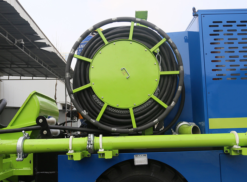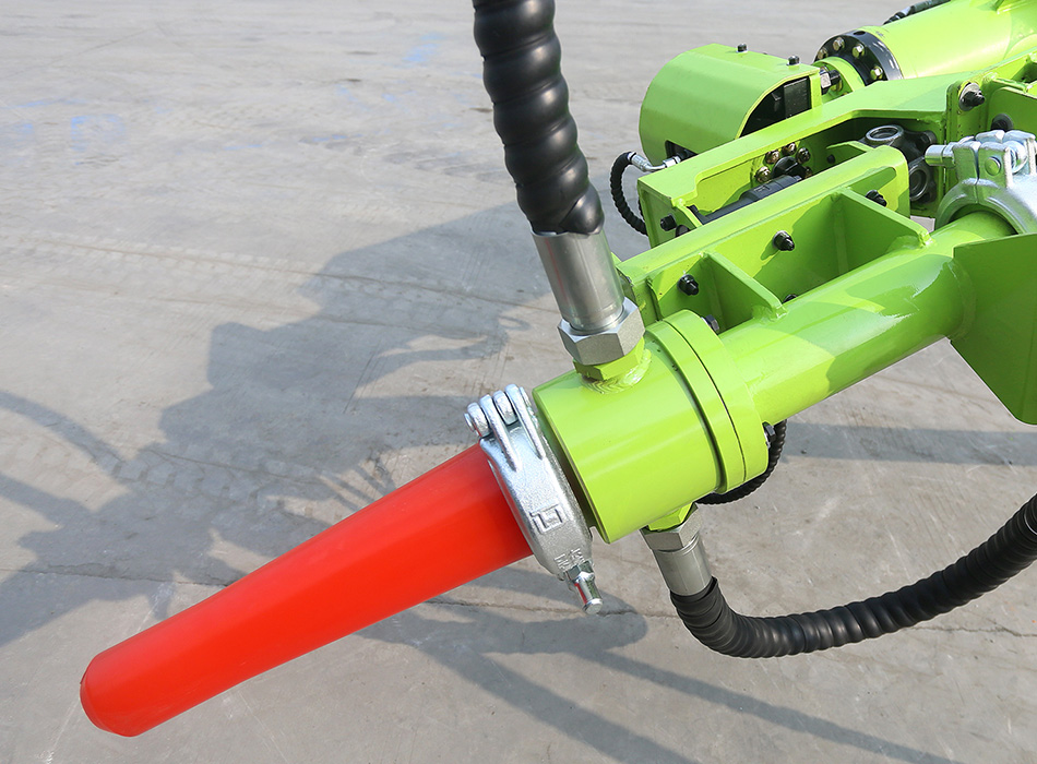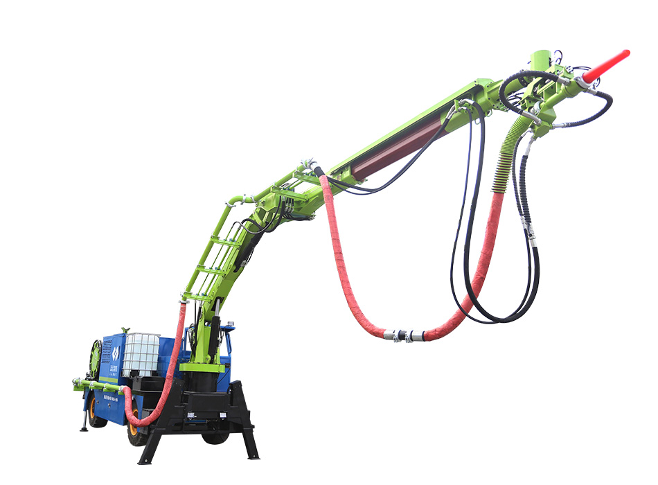 LHP40M輪式濕噴機(jī)械手采用云內(nèi)發(fā)動(dòng)機(jī),整機(jī)結(jié)構(gòu)優(yōu)化升級(jí),故障率低,泵送系統(tǒng)采用全液壓負(fù)載敏 感系統(tǒng),輸送量穩(wěn)定,維護(hù)成本低;設(shè)備具有噴射方量大、不易堵管、回彈低、粉塵少等優(yōu)勢(shì)。噴射系 統(tǒng)采用無(wú)線遙控操作,易于控制機(jī)械臂的動(dòng)作,具有快速、效率高、節(jié)能等特點(diǎn)。